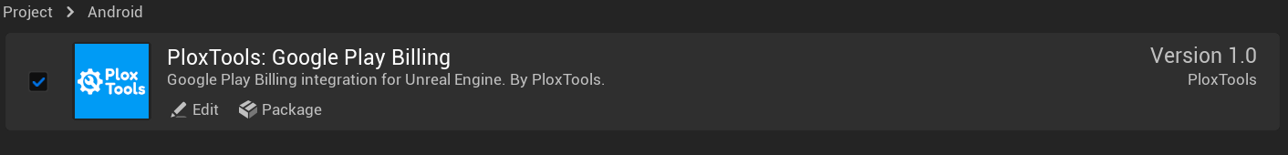 Go to Edit → Plugins, search for "PloxTools: Google Play Billing", and make sure it’s enabled.