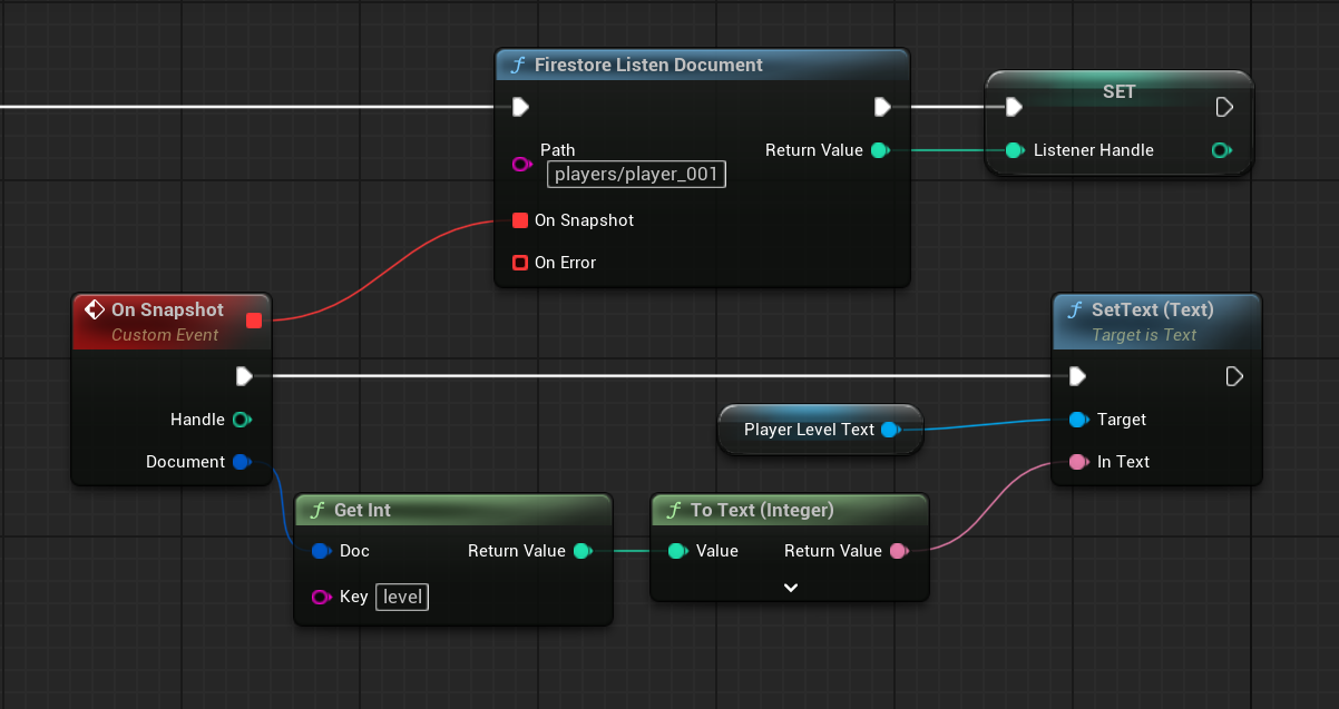 All examples below are shown using Blueprint nodes. Firebase is assumed to be already initialized.