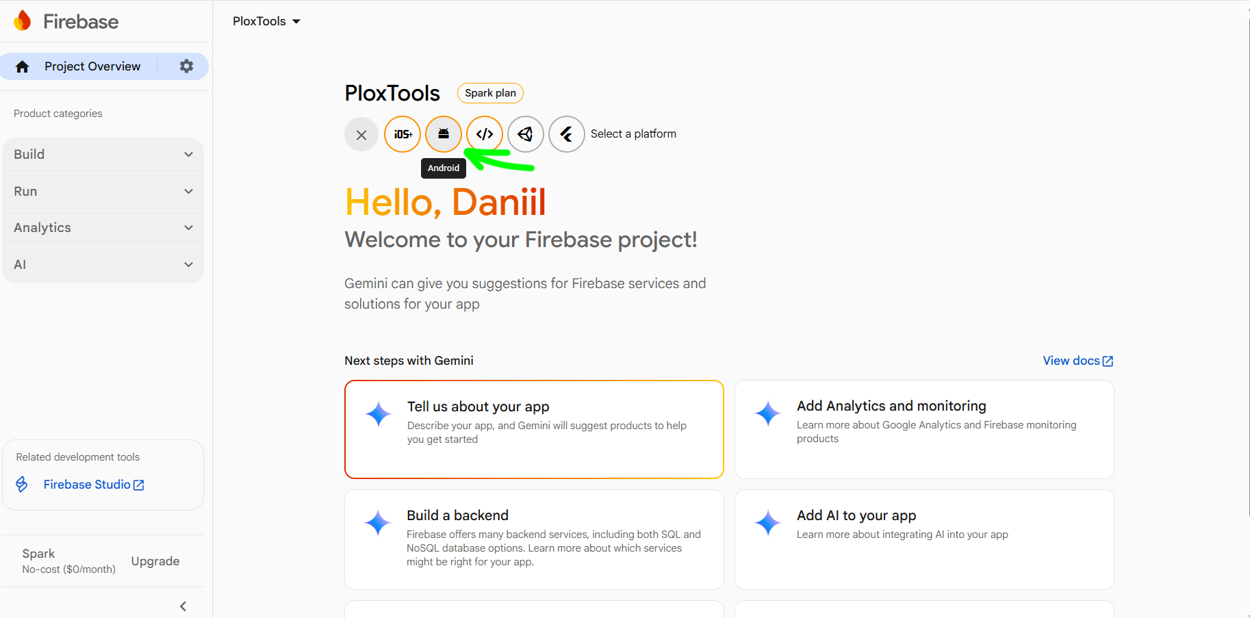 - Navigate to Plugins → PloxTools: Google Firebase Complete.