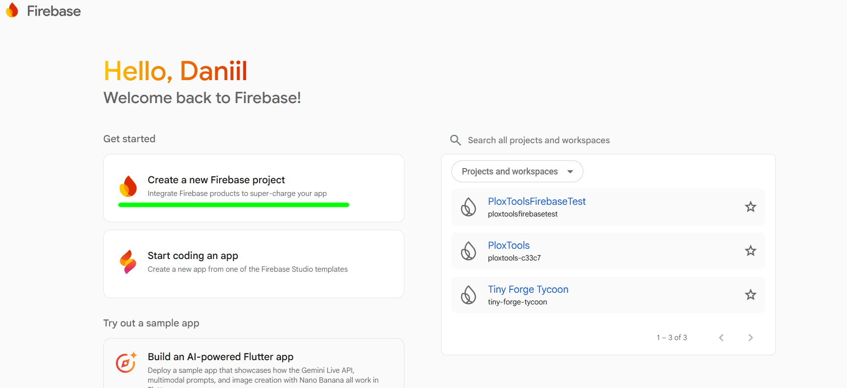 To use Firebase services in your project, you must have an active Firebase account and a Firebase project associated with your application. Firebase uses the same Google account system as Google Play Console, so no separate registration is required.