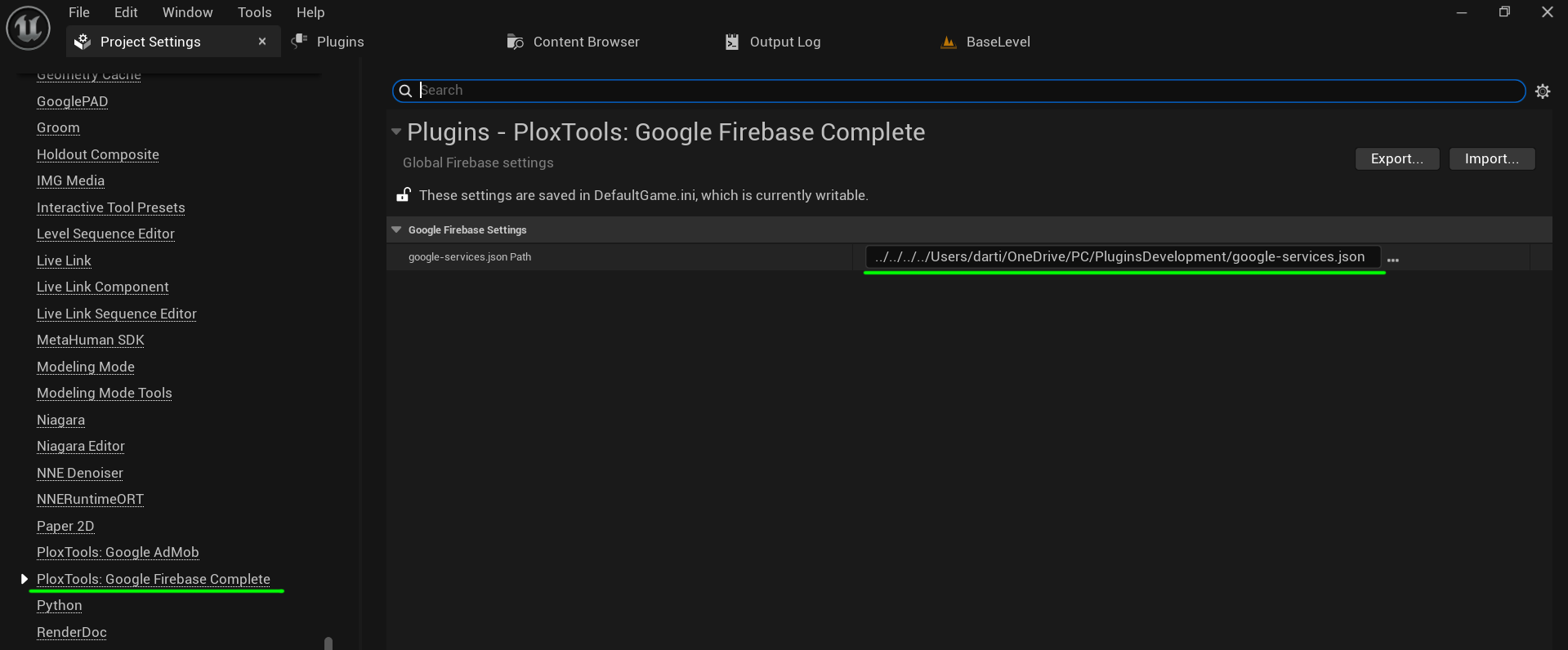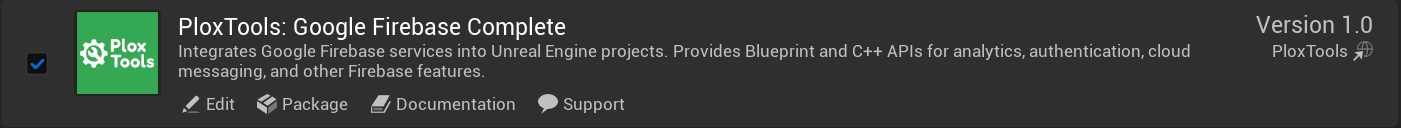 Once installed, the plugin will be available in Unreal Engine under the Plugins section. Go to Edit → Plugins, search for "PloxTools: Google Firebase Complete", and make sure it’s enabled.