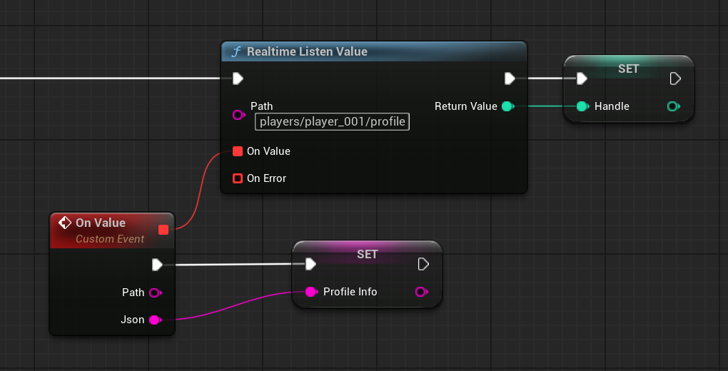 All examples below are shown using Blueprint nodes. Firebase is assumed to be already initialized.