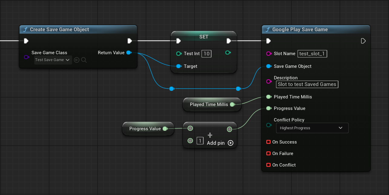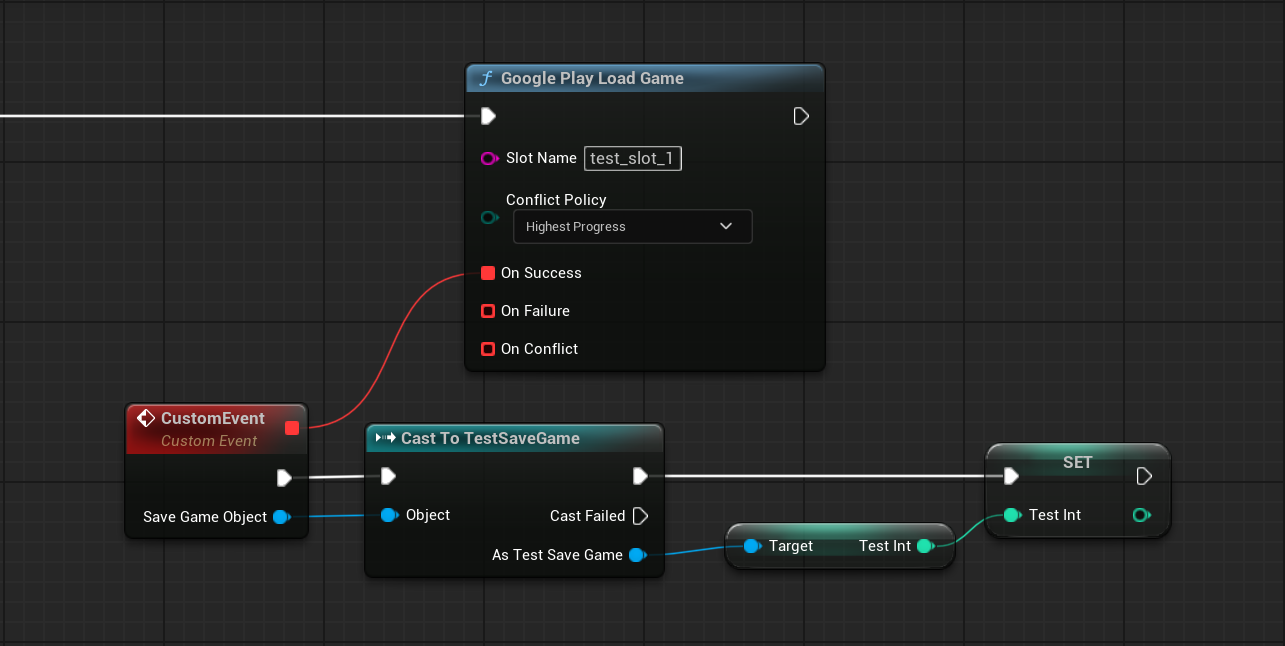 USaveGameobject to Google Play Games cloud storage. - Load Game returns a