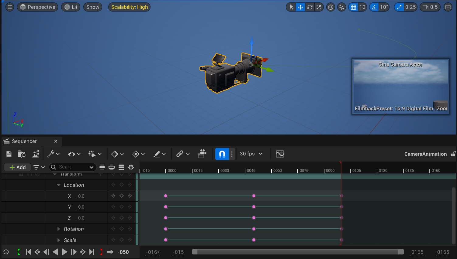 - Animate a camera in a Level Sequence