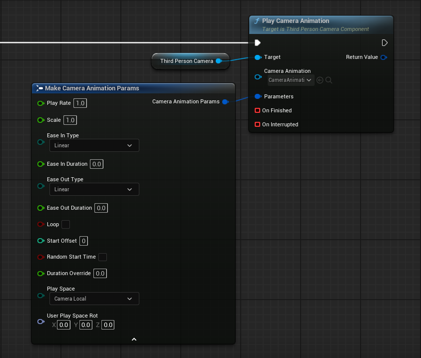 - Play Camera Animation - plays a camera animation and returns a handle used to control it