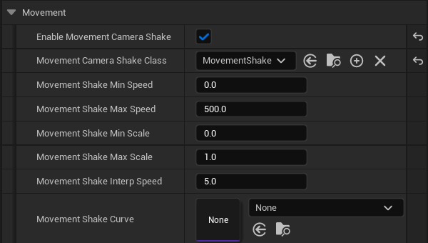 - Enable Movement Camera Shake - enables shake based on movement speed