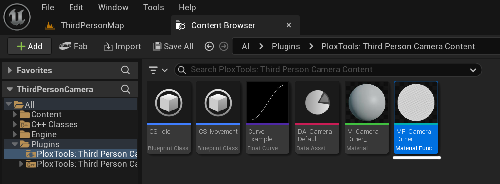 - Select the Third Person Camera Component