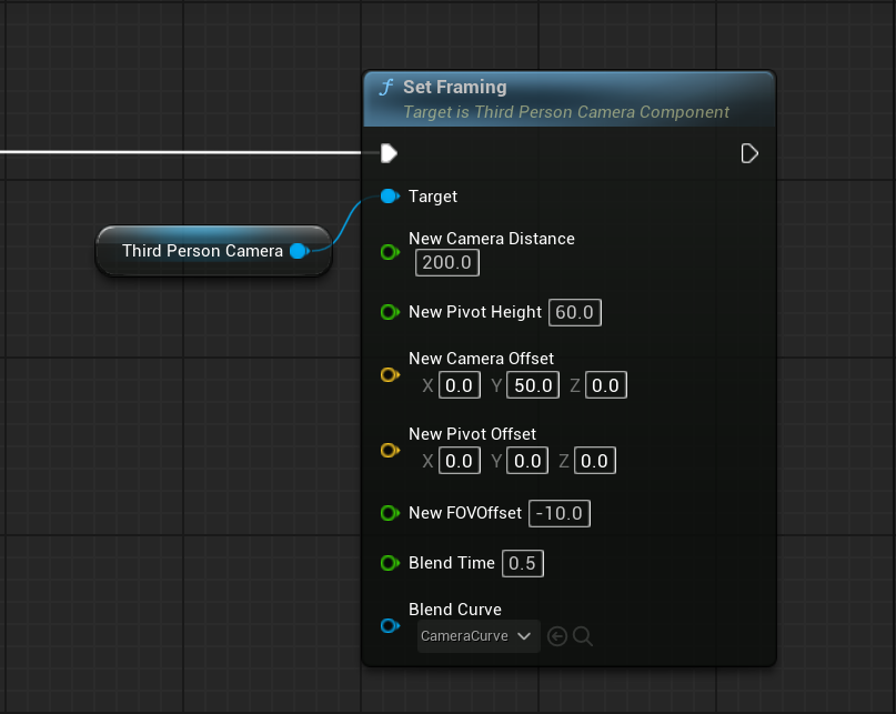 The framing system exposes runtime functions that allow you to modify camera behavior during gameplay.