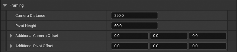 - Pivot Height - сontrols the vertical position of the pivot relative to the actor origin. This defines the center of rotation for the camera