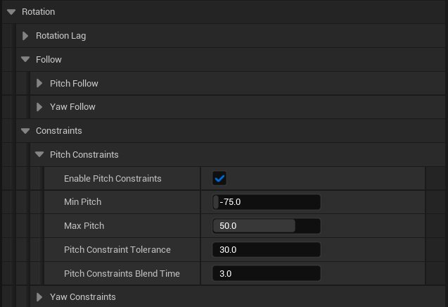 - Pitch Follow Time Threshold - delay before follow starts after input stops