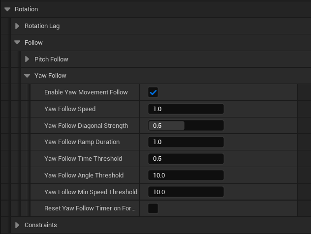 - Yaw Follow Diagonal Strength - follow strength when moving diagonally