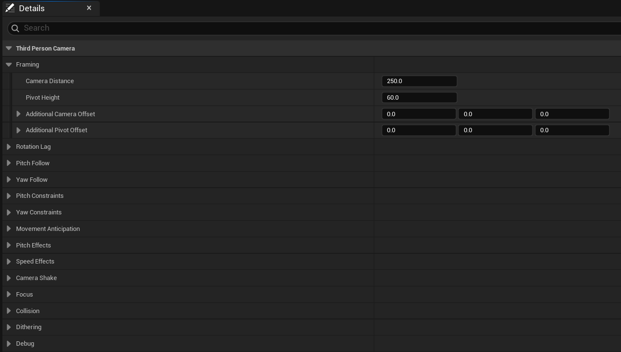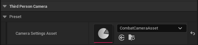 The asset contains the same settings as the ThirdPersonCameraComponent, organized into categories.