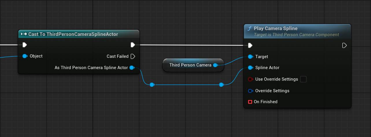 - Play Camera Spline - starts a spline camera and optionally applies override settings