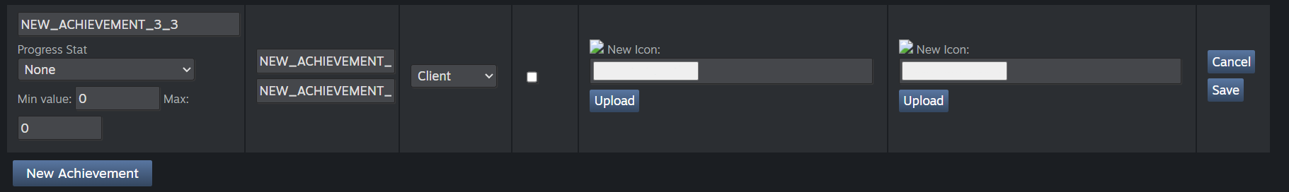 The Progress Stat field links an achievement to a numeric stat and is used for incremental achievements.