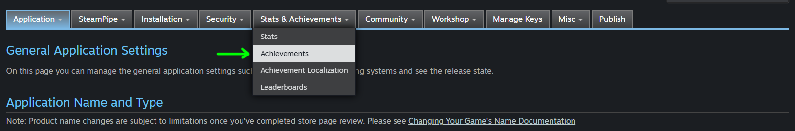 - Open the application checklist and navigate to Edit Steamworks Settings