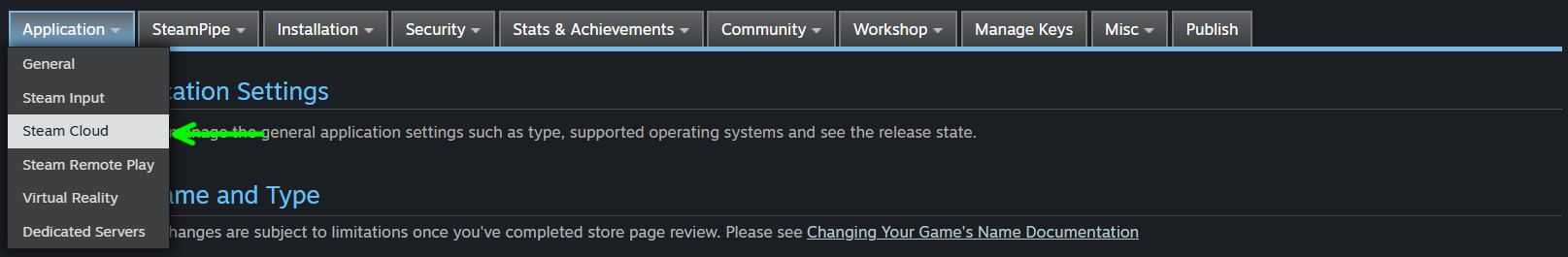 - Open the application checklist and navigate to Edit Steamworks Settings