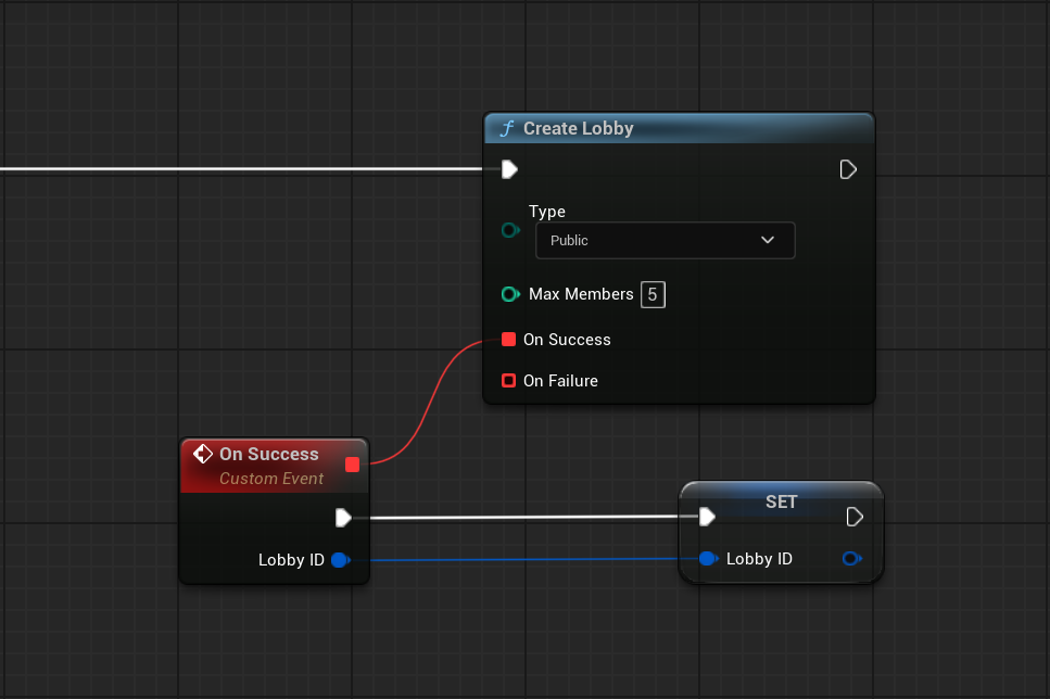 Lobby creation is asynchronous. When the operation succeeds, a valid FSteamLobbyID is returned through the On Success callback.