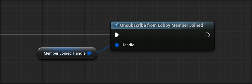 When the event is no longer needed, for example when the lobby is left or the UI is closed, the stored listener handle is passed to the Unsubscribe from Lobby Member Joined node.